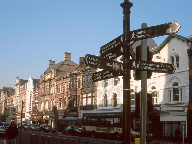 Nach dem Mittagessen scheint schon längst die Sonne; wir bummeln durch Cardiff; je nach Lust und Laune geht es in das Schloss oder den Park, in Geschäfte und die historische Markthalle oder einfach zu Fuß durch die Straßen. Die Wegweiser sind zweisprachig (walisisch und englisch) – da finden alle rechtzeitig zum Bus zurück ...
