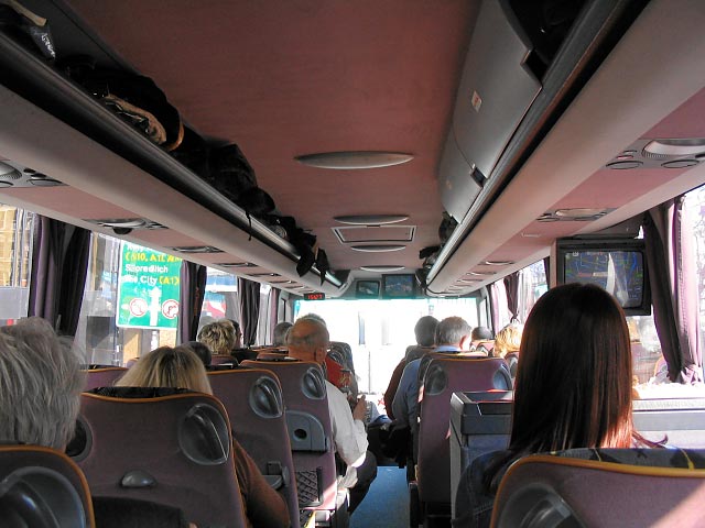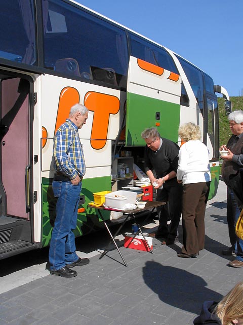 Um Punkt 12 Uhr starten 33 Teilnehmer – darunter auch wieder vier Jugendliche – mit dem Pollitz-Bus und Wolfgang am Steuer in Richtung Hoek van Holland. Die Stimmung im Bus ist gut, die Verpflegung ebenfalls. Unten im Bus sind – außer unserem zahlreichen Gepäck – etliche Kisten mit Getränken, Würstchen und Suppen verstaut; und fast bei jedem Halt wird frischer Kaffee angeboten. Schon mal hier vielen Dank an Wolfgang, Ela und alle ihre Helfer! Gegen 20 Uhr checken wir auf der „Stena Britannica“ ein und essen gemeinsam zu Abend.